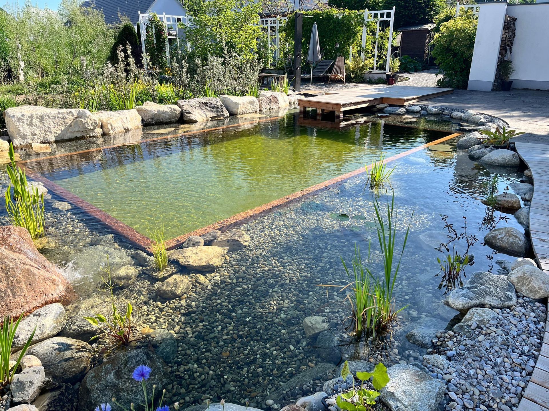 Wir bauen seit fast 20 Jahren Schwimmteiche und über 30 Jahre Naturteiche und haben einen großen Erfahrungsschatz gewinnen können. Dabei gestalten wir sowohl große Projekte als auch architektonische Wasserbecken mit Überlaufkante.